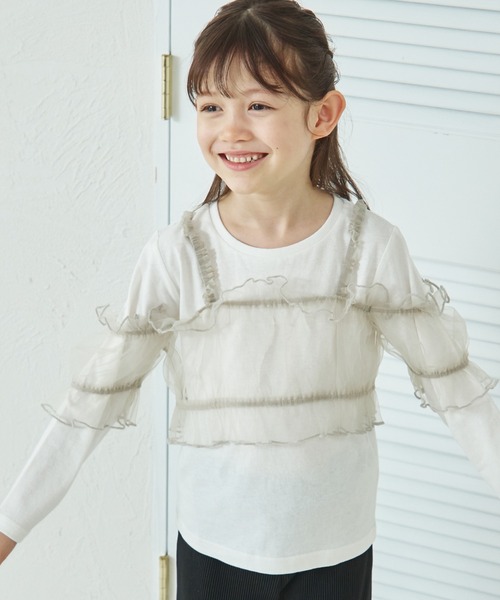 チュールビスチェと長袖Tシャツの2点セットアイテムです。