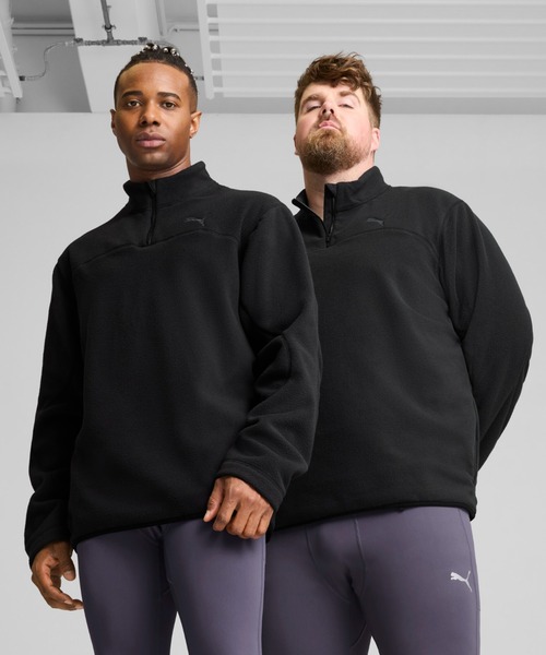 柔らかい生地で触りごこちバツグンのトップスです。首元はジップで調整可能。胸元のプーマキャットロゴ刺繍がワンポイントなアイテムです。