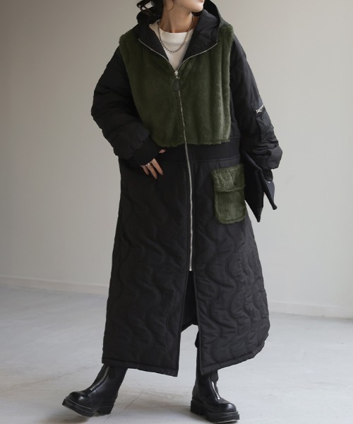 ゆったりオーバーサイズが可愛く保温性もある中綿ロングコートです。