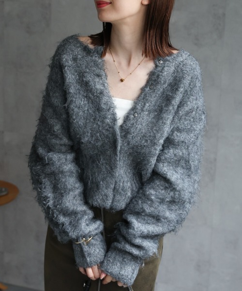 ミックスシャギー ショート丈ニットカーディガン/カーデ/秋冬