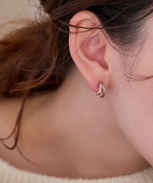 【ひとつでレイヤードスタイルを叶えてくれるクリスタルループフィットイヤリング】ワンアイテムでイヤリングをふたつ重ね着けしているように見える、新しいシルエットが魅力♪