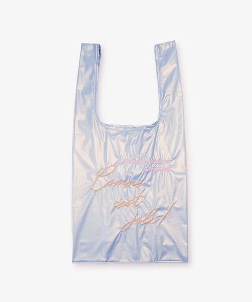 パール感のある生地に、配色の刺繍でアクセントを効かせました。ベーシックなレジ袋型で、お買い物に使いやすいMサイズです。ハンドルを長めに設定しており、手持ちはもちろん肩掛けスタイルでも楽しめます。使わないときはコンパクトに畳んで、バッグの中でもかさばらずに持ち運びが可能。収納袋が本体と一体型になっているため、袋を無くす心配もありません。お仕事帰りの買い物やお出かけ先で荷物が増えたときにも役立ちますよ。ご自宅用にはもちろん、プレゼントにもいかがでしょうか。