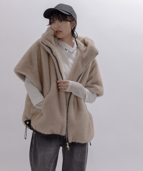 フェイクのミンクファーなので、ちょっとの外出の際にも気軽に羽織れます。