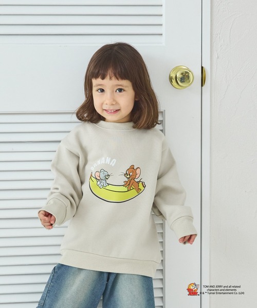 トムとジェリーと食べ物モチーフをプリントした裏起毛トレーナーです。