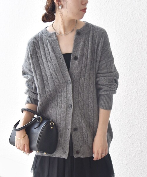 〈デザインポイント〉ヤク混の柔らかな糸を使用したケーブルカーディガン。