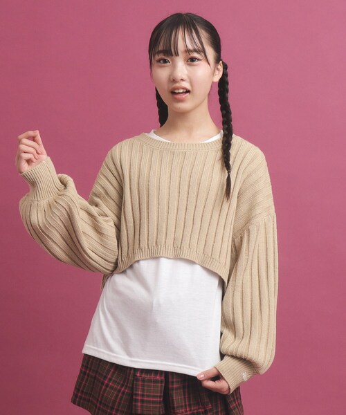 15(150cm):ニット着丈38cm ニットB105cm ニット袖丈41cm ニット肩幅53cm Tシャツ着丈55cm TシャツB90cm Tシャツ袖丈53cm Tシャツ肩幅35cm