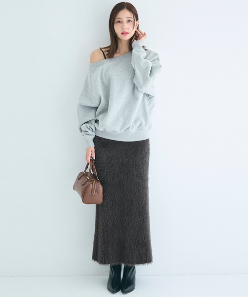 取り入れるだけで上品見え!シャギーニットIラインスカート