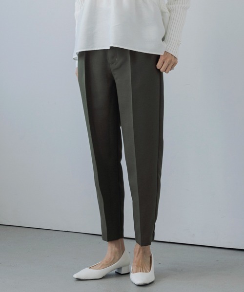 センタープレスを入れたスッキリ見えのきれいめ美脚テーパードパンツです。