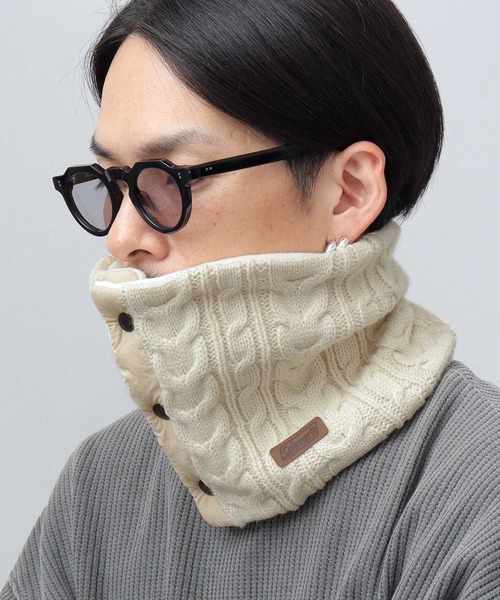 アメリカ生まれの老舗アウトドアブランド“Coleman(コールマン)”のフロント釦仕様のネックウォーマー。秋冬らしいケーブル編みニットを表地に使用した、暖かみのある表情が魅力。しっかり高さのある作りで、首元をすっぽりと包み込み、冷たい風や寒さからしっかりガード。裏地には、柔らかく、温もりのある肌触りのフリース生地を使用。柔らかな素材感で、高さのある作りでありながらもストレスのない着け心地に。正面合わせのスナップボタン仕様なので簡単に着脱できるのも嬉しいポイント。普段使いやタウンユースにはもちろん、通勤や通学にもおすすめ。