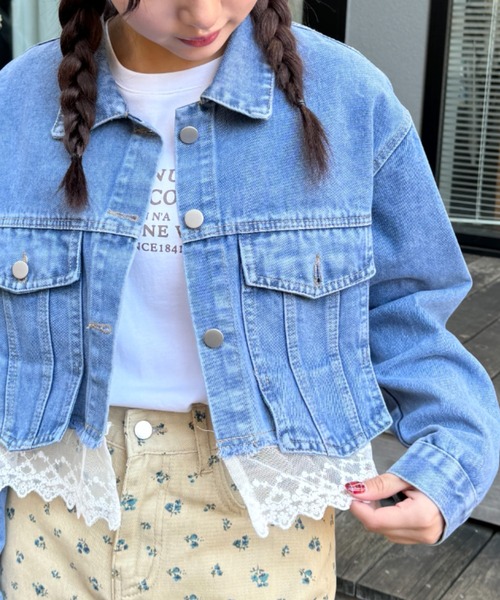 ・裾のレースデザインが可愛いショート丈のデニムジャケット!