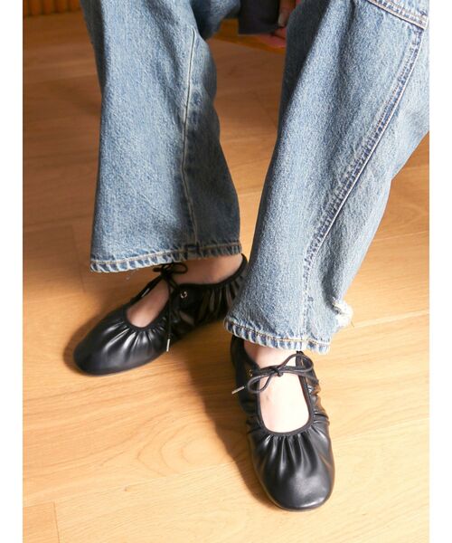 ギャザーデザインがポイントのフラットシューズ
