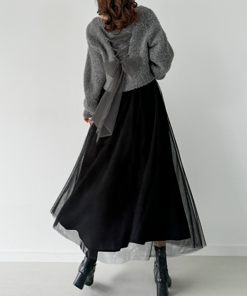 ニットはレースアップデザイン&大ぶりチュールリボンで、後ろ姿まで抜け目なくかわいらしい♡