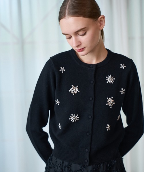 Holiday Collectionのテーマから、雪の結晶をイメージしたビジューをトレンド感を意識してあしらったカーディガンです。