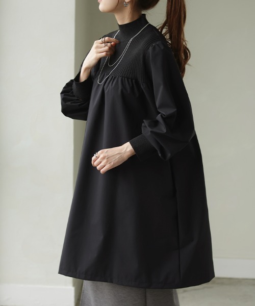 異素材ドッキングでゆるりとモードなドッキングワンピースです。