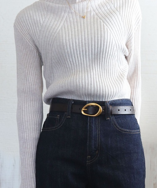 アンティークゴールドの歪んだリングバックルが、大人のこなれ感をプラスするスタイリッシュなデザインです。