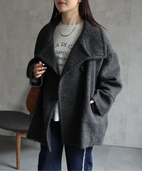 大きめのスタンドカラーで小顔見せ抜群のミドルコート