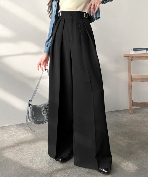 ハイウエスト×サイドベルトでスタイルアップ効果抜群♪