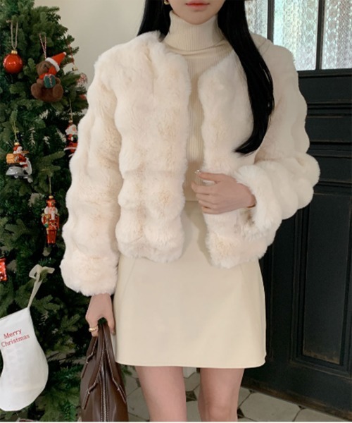 立体感のあるデザインがかわいいファージャケットです。