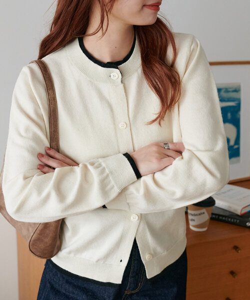 DISCOAT ONLINE LIMITED ITEM季節目の変わり目に大活躍するカーディガン・シンプルながらデザイン性のあるクルーネックカーディガン