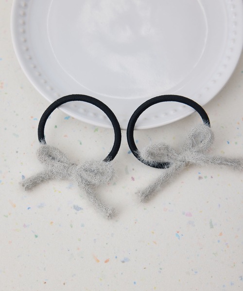 ・シャギーリボンをあしらった、暖かみのあるヘアゴム。