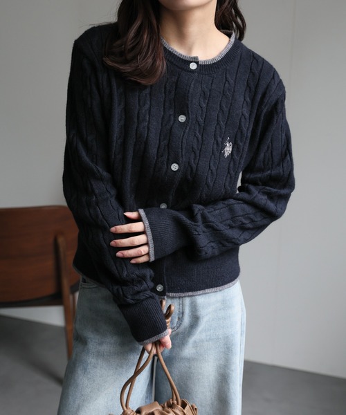ap retro別注【U.S. POLO ASSN./ユーエスポロアッスン】ケーブルニットカーディガン