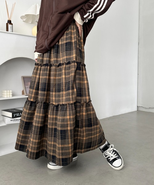 トレンドのチェックデザインがポイント!深みカラーがお洒落度をグッと上げるティアードスカート