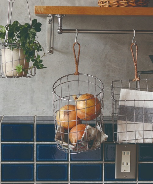 統一感のないものでもワイヤーバスケットに入れることでまとまりが生まれ、お洒落なカフェのような雰囲気に。