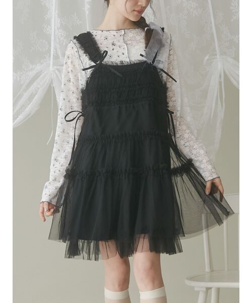 トレンドのチュールをフリルでたっぷり使用したミニキャミワンピ―ス。