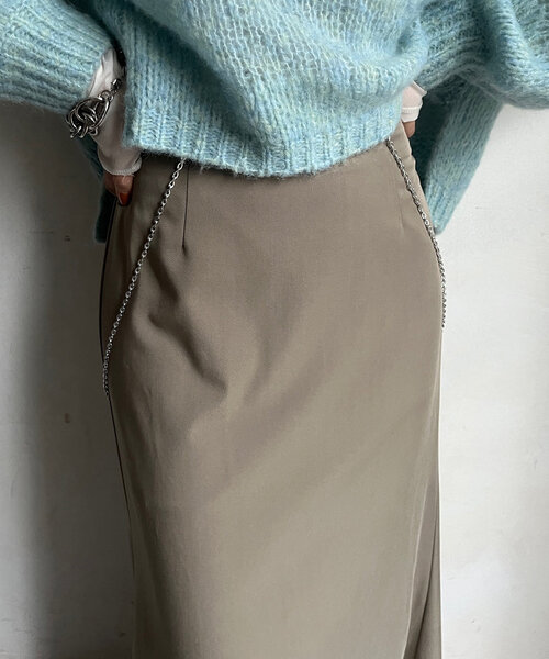 今までにはあまりなかった新鮮なプラスワンアイテムとして取り入れられる、チェーンのサスペンダー。