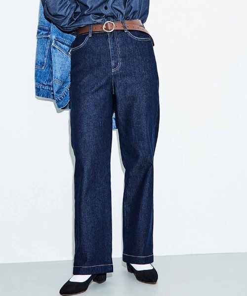 ヒップやおなか・太ももまわりをカバーしながら、すそからすきま風が入りにくい”ちょうどいいワイド感”はキープ。