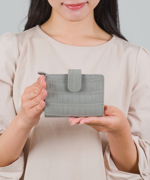 高級感溢れる無地クロコダイル革が印象的な二つ折り財布です。