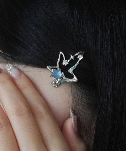 【 Port / ポート 】 シルバー × ブルー デザイン ミニ ヘアクリップ #