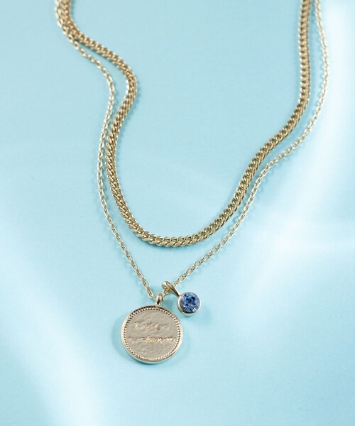 ■デザイン 23区定番人気の2WAYコインショートネックレス(品番:AS3DSS0003)をベースにしたネックレスです。同じくショートチェーンを外してご着用頂ける2WAY仕様になっています。コインにはフランス語で23区を意味する「vingt-trois arrondissements」のロゴが筆記体で刻印されています。華奢なツヤ感のあるゴールドメッキのチェーンと6mmと小さいながらも美しい輝きを放つ誕生石カラーのガラスのチャームが上品さを演出してくれます。どの世代の女性にもよく似合う、シンプルで洗練されたネックレスです。カラーは誕生石の12色展開になります。同じく、誕生石にちなんだカラーラインナップで展開しているカラー スウェット(品番:KKWOCW0137)とのスタイリングもおすすめです。