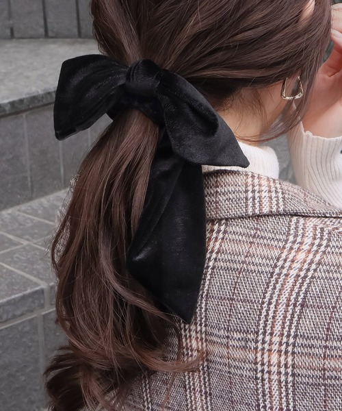 ベロアならではの上品な光沢が、華やかな印象のリボンデザインシュシュ。