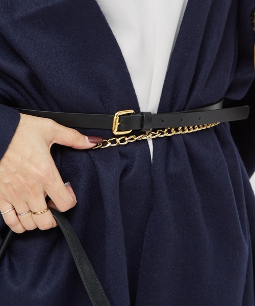 シンプルながらも洗練されたレザーとゴールドのチェーンのコンビベルト。