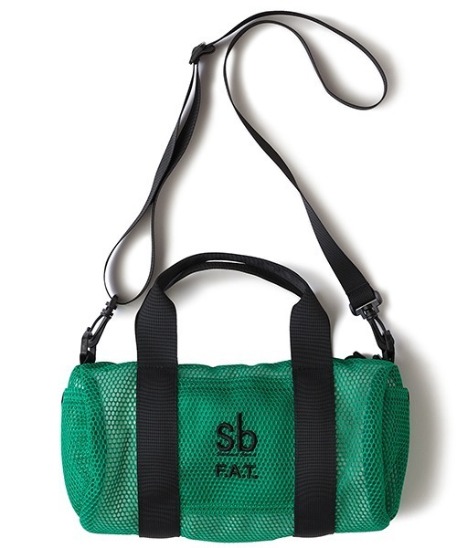 柔らかなメッシュ素材を使用したSb×F.A.T.シリーズのミニドラムバッグ。ショルダーストラップを外して、ハンドルタイプでコーディネートのアクセントにしても面白い。ウォレット、鍵、ペットボトル、タオルなどを収納して旅先やアクティブシーンで活躍してくれるアイテム。フロントポケットのロゴ刺繍、サイドポケットのSb×F.A.T.ネームが程よく主張してくれる。