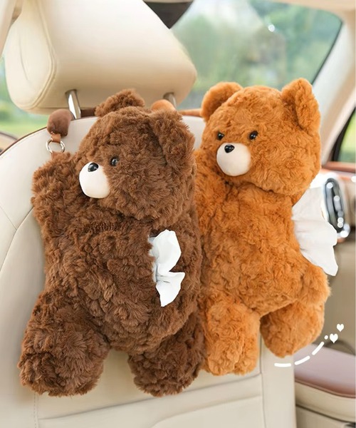 まるでカーシートに抱き着いているような、くまのぬいぐるみティッシュケース♡