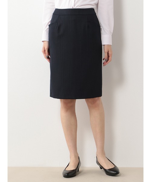 同素材のジャケットとセットアップでそろえたい、ネイビーストライプ柄のスカートです。