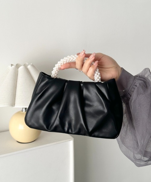 持ち手のパールが女性らしさを演出してくれるハンドバッグ!
