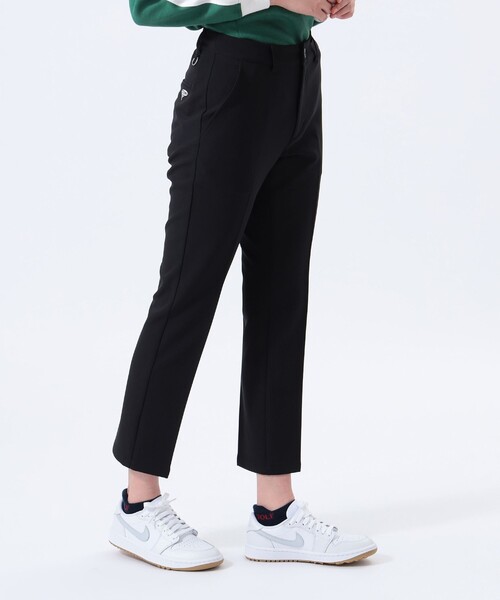 シーズンレスで味わう快適な穿き心地程良いストレッチ性とふくらみが特徴のポリエステル二重織テキスタイルを採用した9分丈のテーパードパンツ。やわらかいコットンのような風合いで、快適な穿き心地です。シンプルなシルエットが美しいラインを演出し、すっきりとした印象。長いシーズン活躍でき、ラウンドはもちろん、練習場への行き帰り、デイリーシーンも取り入れやすいアイテムで、ホームケアができる点もポイント。どのようなトップスにも合わせやすく、動きやすさと洗練さを兼ね備えたおすすめの1本です。