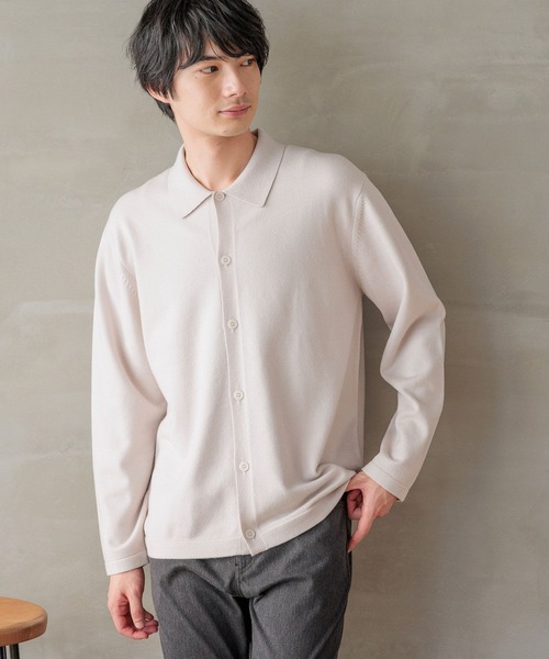 首周りがニットポロ特有の柔らかくも上品な印象にまとまります。
