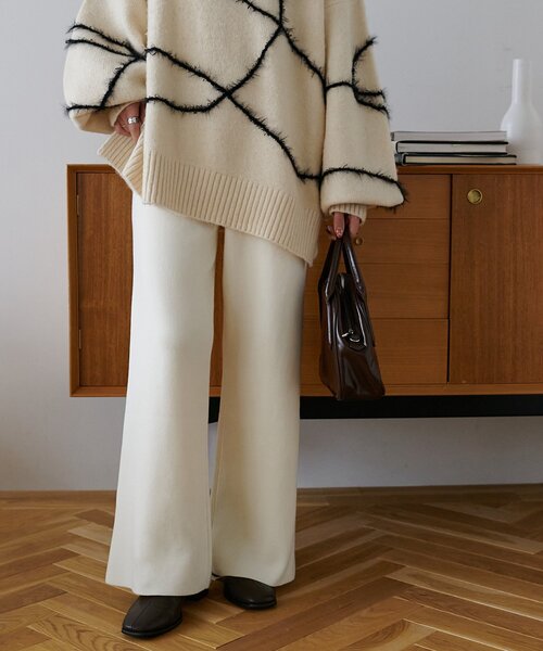 フレアシルエットですっきりとした印象になるので、スタイルアップが叶いニット素材でリラクシーに着られるパンツです◎