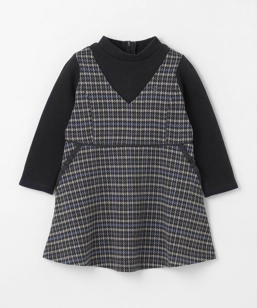オリジナルのチェック柄のジャンスカとニットインナーをレイヤードしたかのようなワンピースアイテムです。