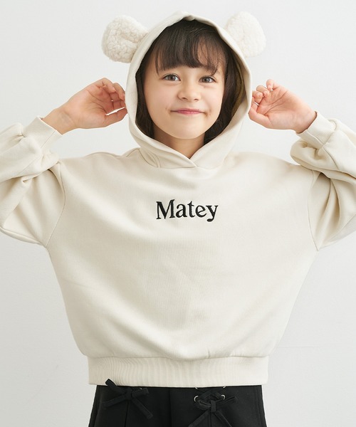 ジュニア トップス パーカー スウェット フード クマ耳 ベアー ボア 刺繍 リブ 長袖 裏起毛 カジュアル ガーリー 甘め ゆったり リラックス かわいい ロゴ ロゴスウェット 女の子 ガールズ 120 130 140 150 COCA