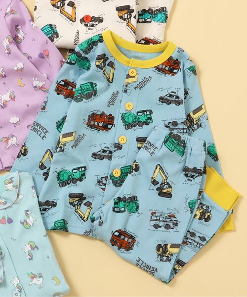 apres les cours(アプレレクール)の「働く車総柄パジャマ」は、ナチュラルなスタイルにさりげなくデザインをプラス♪