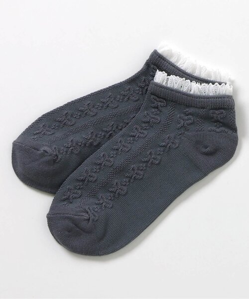 apres les cours(アプレレクール)の「リボン柄フリルショートソックス」は、ナチュラルなスタイルにさりげなくデザインをプラス♪