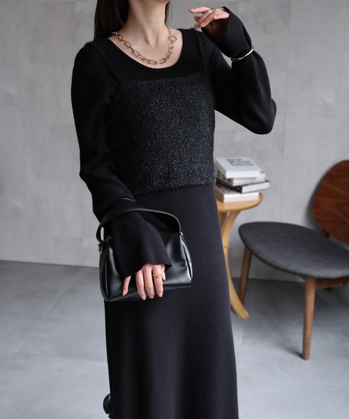 Aラインのニットワンピースとラメ糸のニットビスチェのセットアイテム