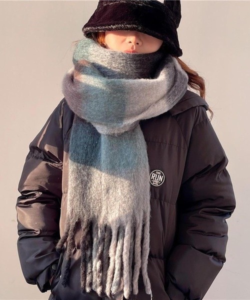 チェック柄×モヘアライクなふんわりボリュームマフラー