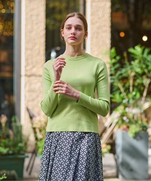 スッキリとコンパクトなサイズ感でありながら、身体のラインを拾いすぎない程よい肉感の編地で仕上げています。