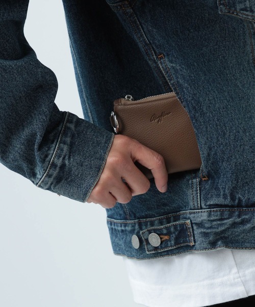 カードサイズのカラビナ付きラウンドジップポーチです。